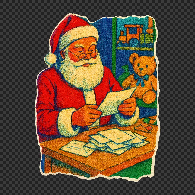 PNG Santa reading colorful holiday letters. https://www.rawpixel.com/image/22974848/png-santa-reading-colorful-holiday-lettersView license