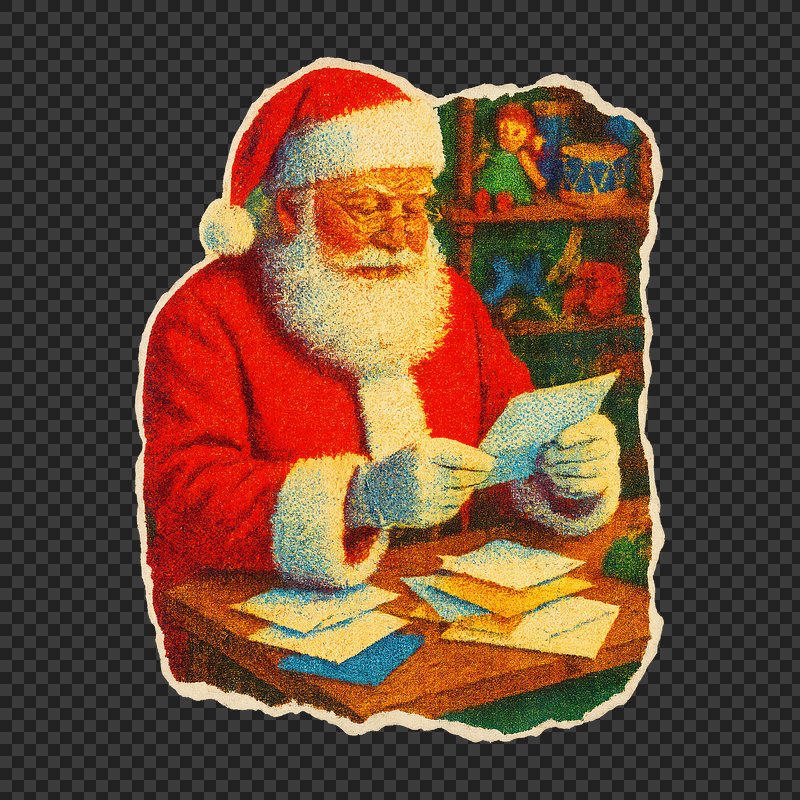 PNG Santa reading children's letters. https://www.rawpixel.com/image/22212828/png-santa-reading-childrens-lettersView license