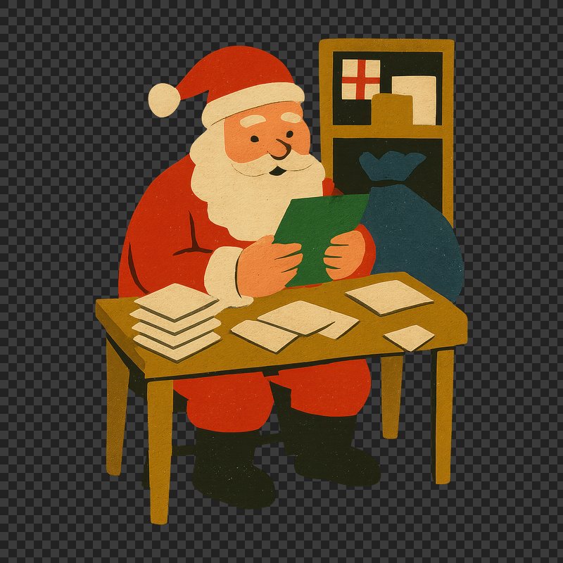 PNG Santa reading holiday letters https://www.rawpixel.com/image/22056273/png-santa-reading-holiday-lettersView license