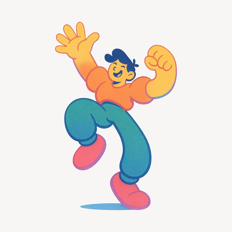 Joyful cartoon character jumping energetically. https://www.rawpixel.com/image/22388186/joyful-cartoon-character-jumping-energeticallyView license