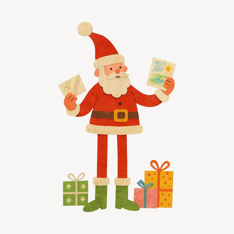Santa holding gifts and cards. https://www.rawpixel.com/image/22910846/santa-holding-gifts-and-cardsView license