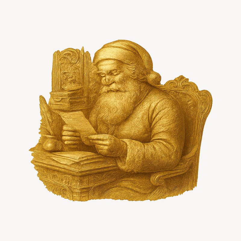 Golden Santa reading letter https://www.rawpixel.com/image/22285118/golden-santa-reading-letterView license