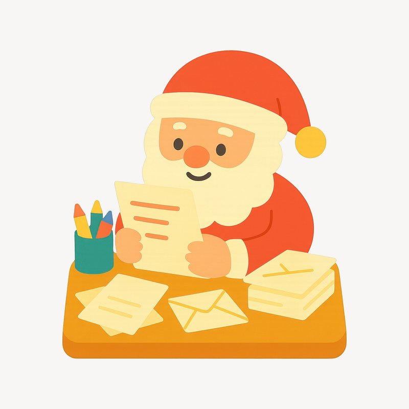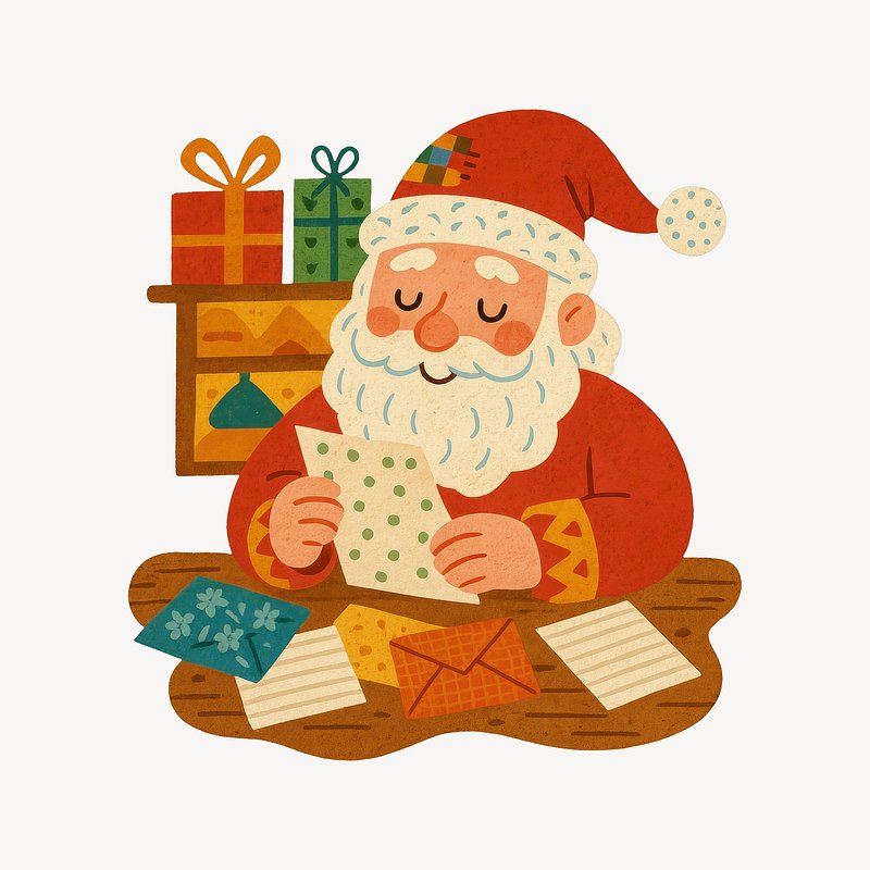 Santa reading colorful holiday letters. https://www.rawpixel.com/image/23117129/santa-reading-colorful-holiday-lettersView license