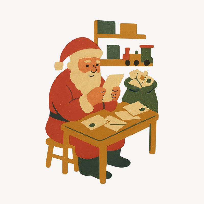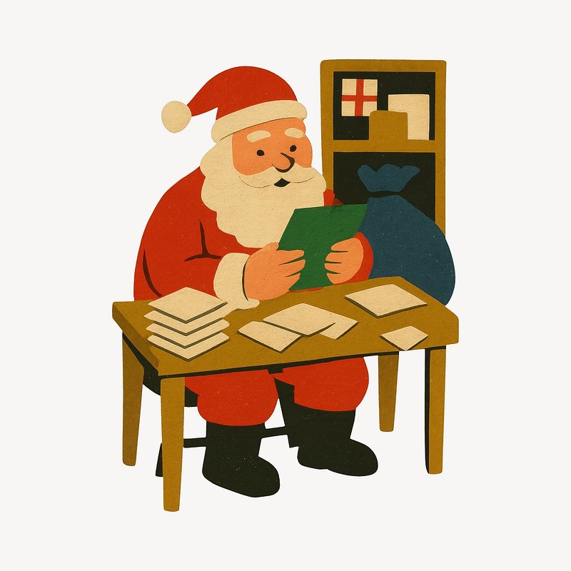 Geometric Santa reading letters https://www.rawpixel.com/image/23181641/geometric-santa-reading-lettersView license