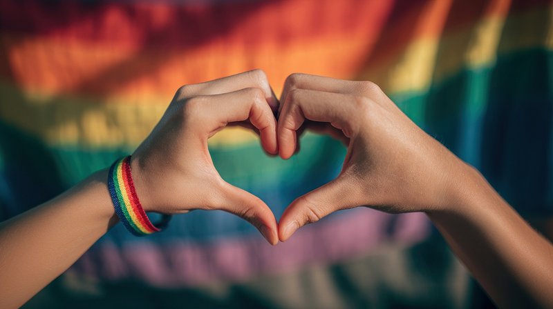 Heart hands with rainbow flag. https://www.rawpixel.com/image/25463013/heart-hands-with-rainbow-flagView license