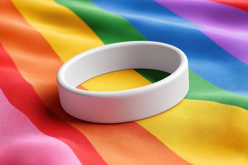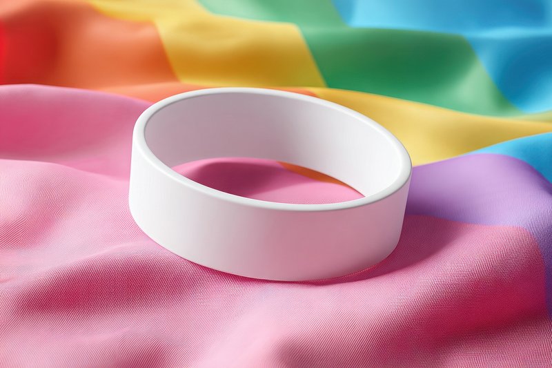 White bracelet on rainbow fabric. https://www.rawpixel.com/image/25310056/white-bracelet-rainbow-fabricView license