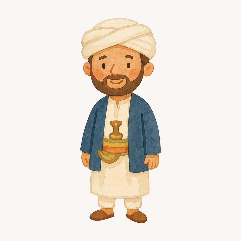 Traditional Middle Eastern cartoon character. https://www.rawpixel.com/image/19316283/traditional-middle-eastern-cartoon-characterView license