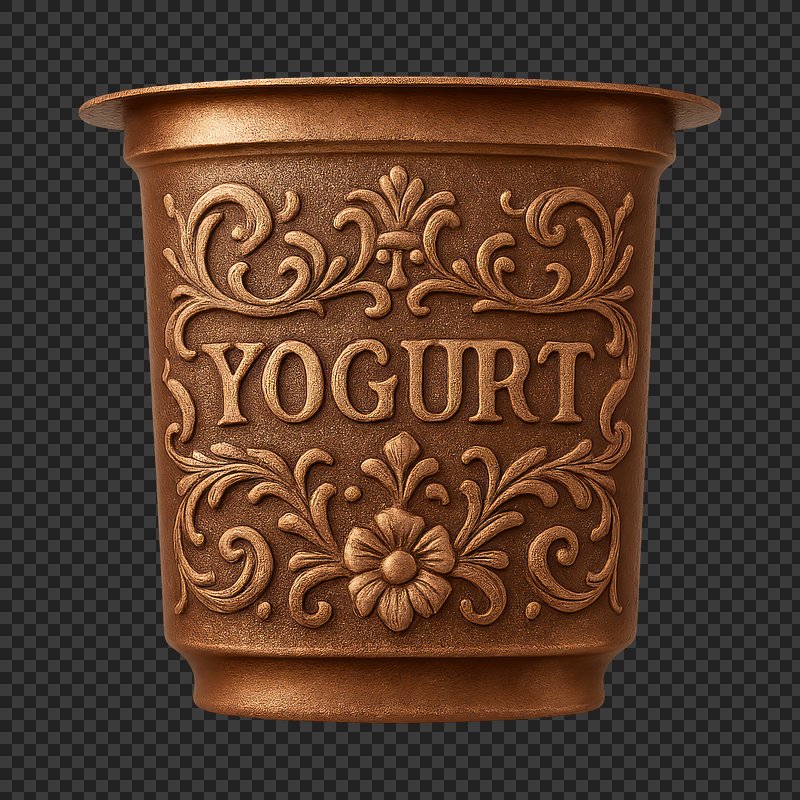 PNG Ornate bronze yogurt container illustration. https://www.rawpixel.com/image/24325036/png-ornate-bronze-yogurt-container-illustrationView license