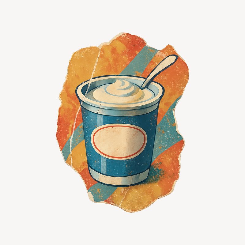 Retro colorful yogurt illustration. https://www.rawpixel.com/image/24567570/retro-colorful-yogurt-illustrationView license