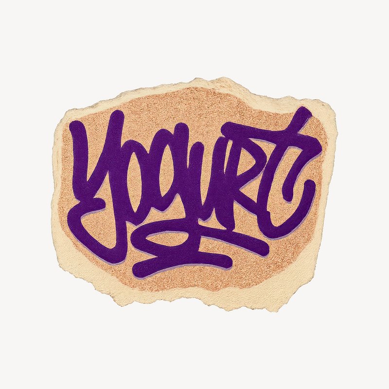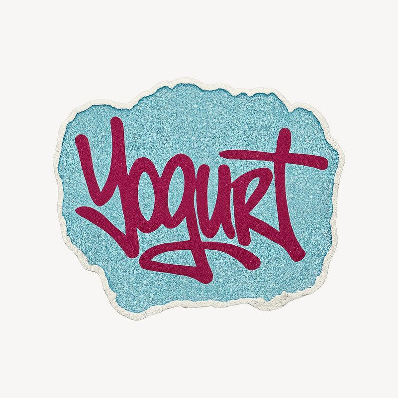 Graffiti-style yogurt sticker design. https://www.rawpixel.com/image/24653740/graffiti-style-yogurt-sticker-designView license