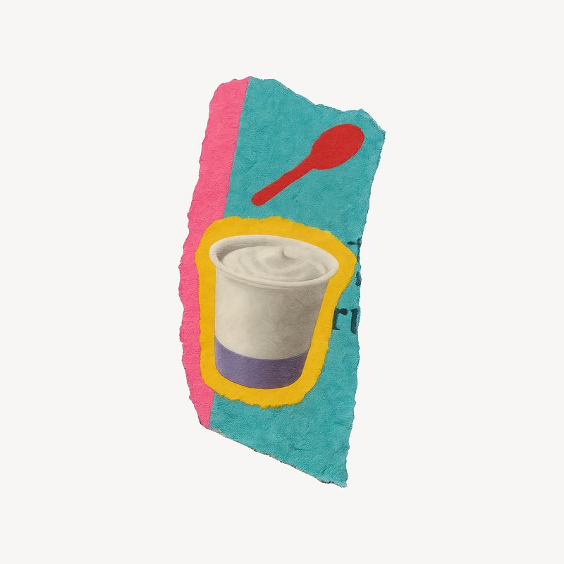 Colorful collage with yogurt cup. https://www.rawpixel.com/image/24494104/colorful-collage-with-yogurt-cupView license
