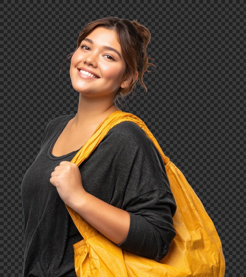 PNG Smiling woman with yellow bag https://www.rawpixel.com/image/25331344/png-smiling-woman-with-yellow-bagView license