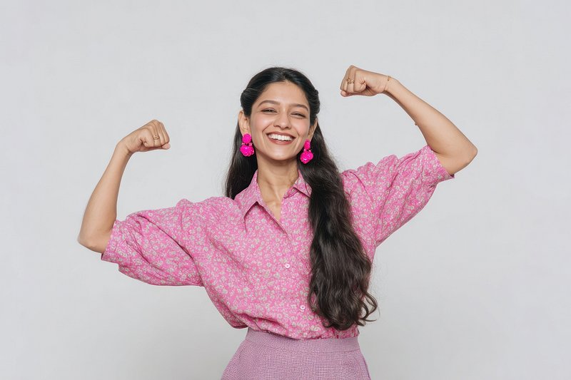 Confident woman celebrating strength. https://www.rawpixel.com/image/25137730/confident-woman-celebrating-strengthView license