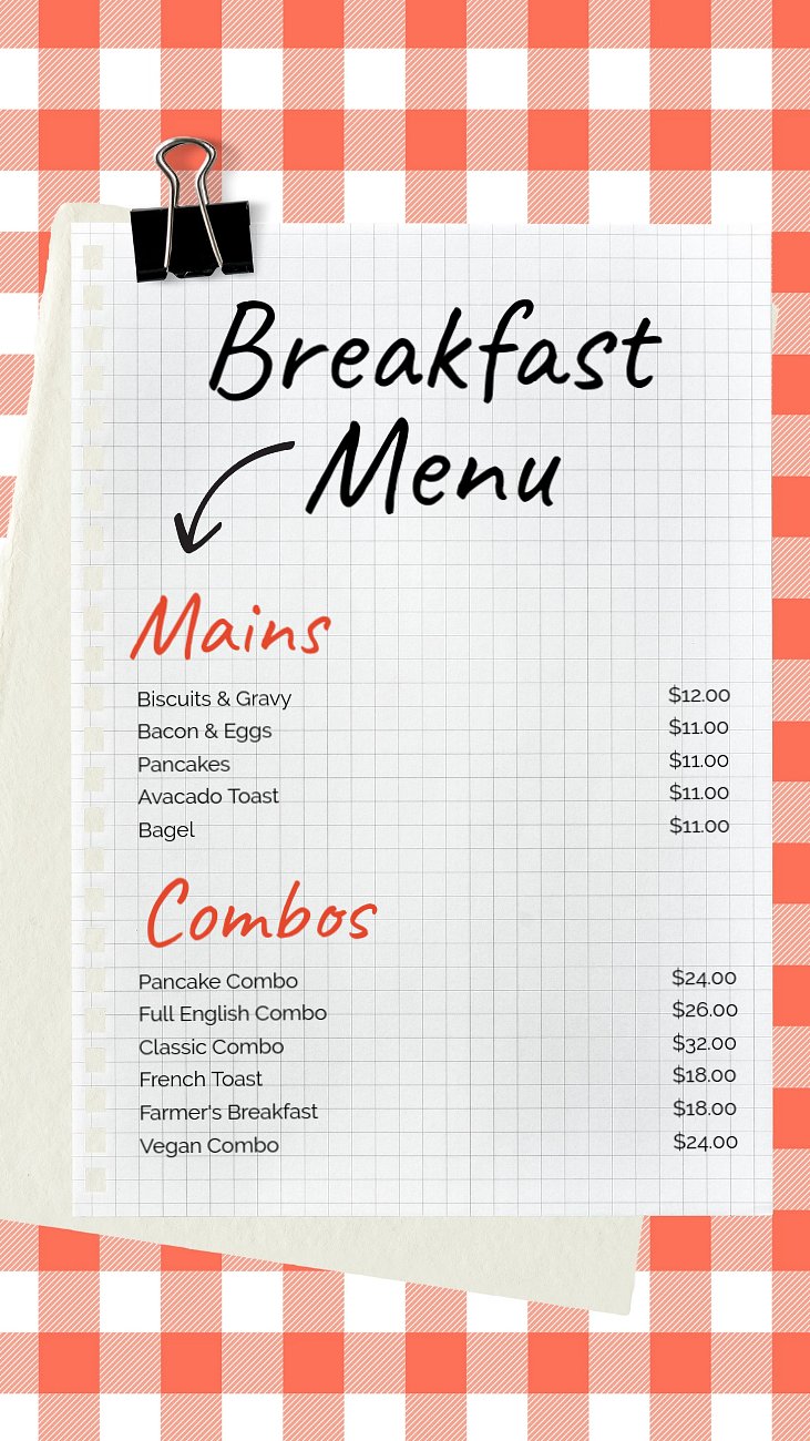 Breakfast menu Instagram story template, editable text https://www.rawpixel.com/image/11797384/breakfast-menu-instagram-story-template-editable-textView license
