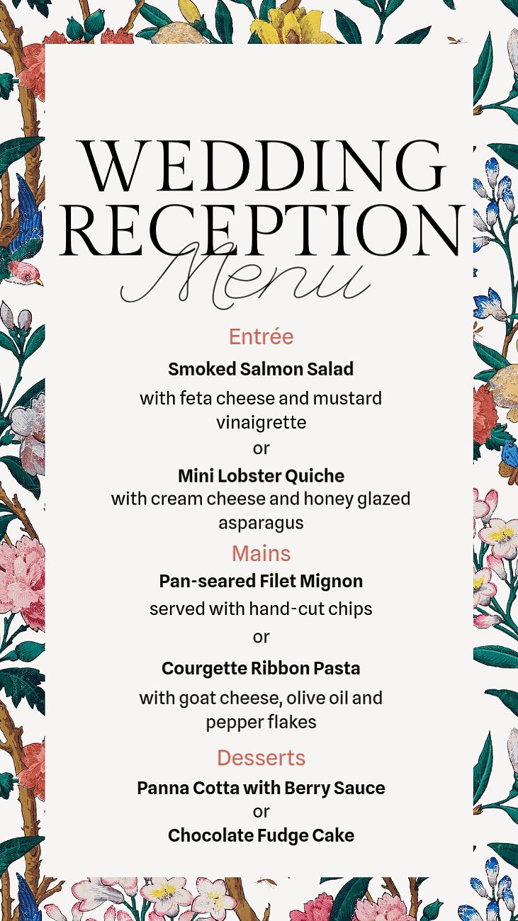 Wedding reception menu Instagram story template, editable text https://www.rawpixel.com/image/11717402/wedding-reception-menu-instagram-story-template-editable-textView license