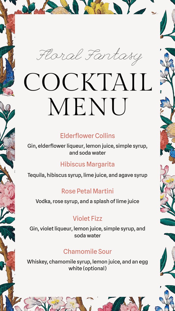 Cocktail menu Instagram story template, editable text https://www.rawpixel.com/image/11715617/cocktail-menu-instagram-story-template-editable-textView license